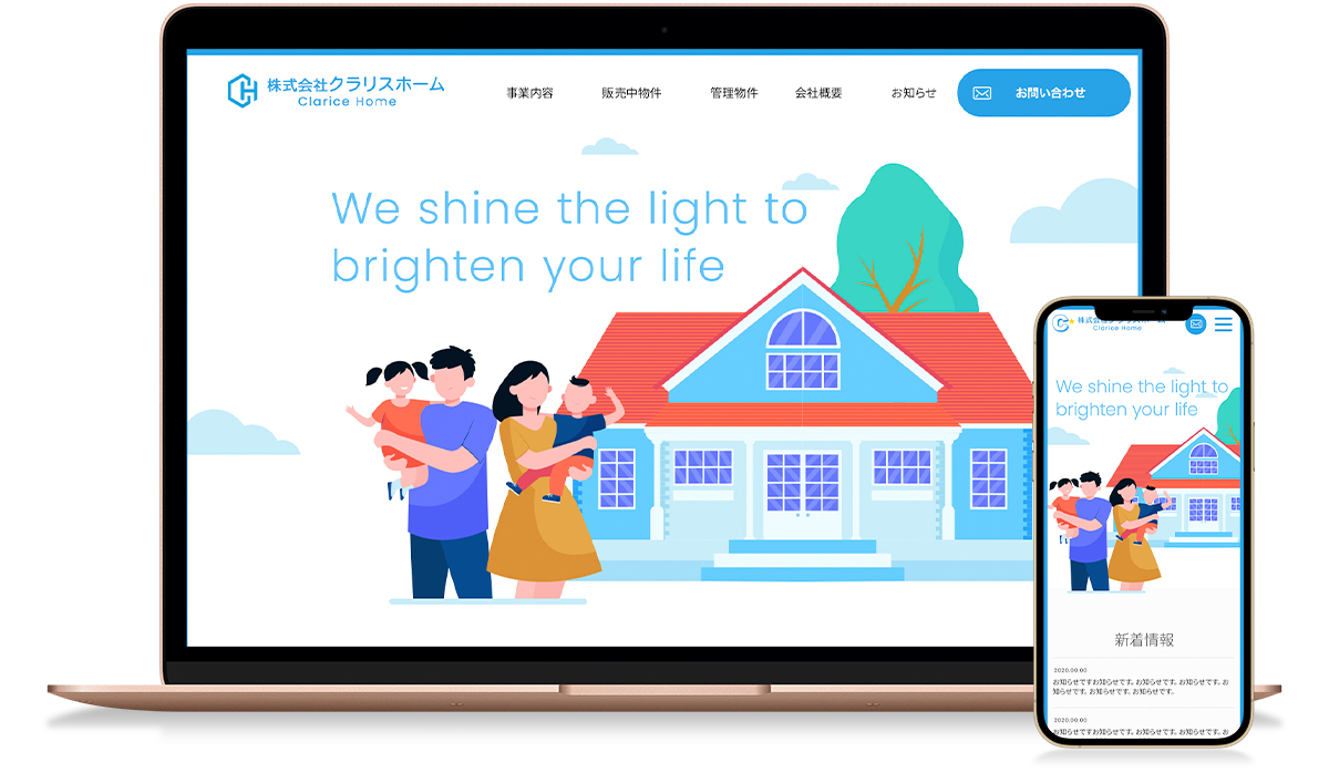 株式会社クラリスホーム様のホームページを新規制作しました。いわゆる「不動産サイト」っぽいイメージのホームぺーじではない、イラストを多用した業界っぽくないホームページをというオーダーがございました。
