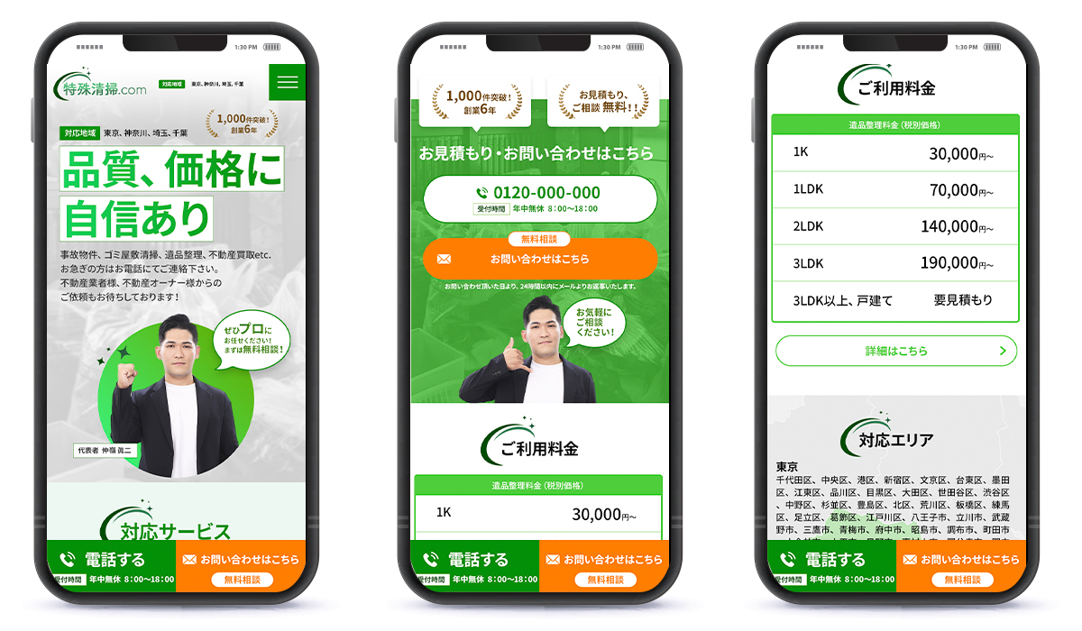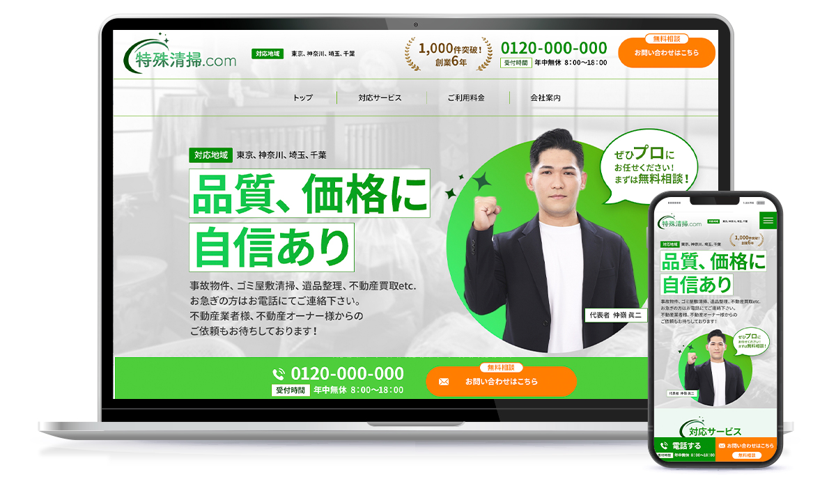 事故物件、ゴミ屋敷清掃、遺品整理、不動産買取を事業とする、東京にある株式会社CLEAN GYMのランディングページを新規で制作いたしました。