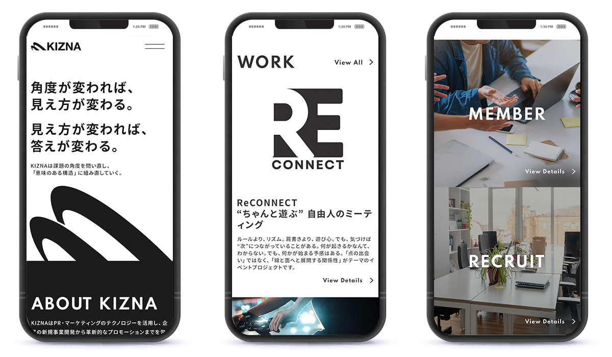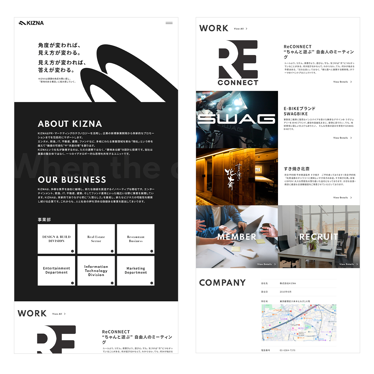 PR・マーケティングのテクノロジーを活用し、企業の新規事業開発から革新的なプロモーションまでを包括的にサポートしている株式会社KIZNAのコーポレイト(会社サイト)を新規制作いたしました。KIZNA様が培ってきた戦略設計力とテクノロジー活用の強みが直感的に伝わるよう、情報設計からデザイン、導線設計までを一貫して構築。事業内容や価値観を明確に整理し、初めて訪れる方にも理解しやすい構成を目指しました。今後の事業拡大や採用活動にも寄与する、ブランドの“ハブ”となるサイトとして仕上げています。