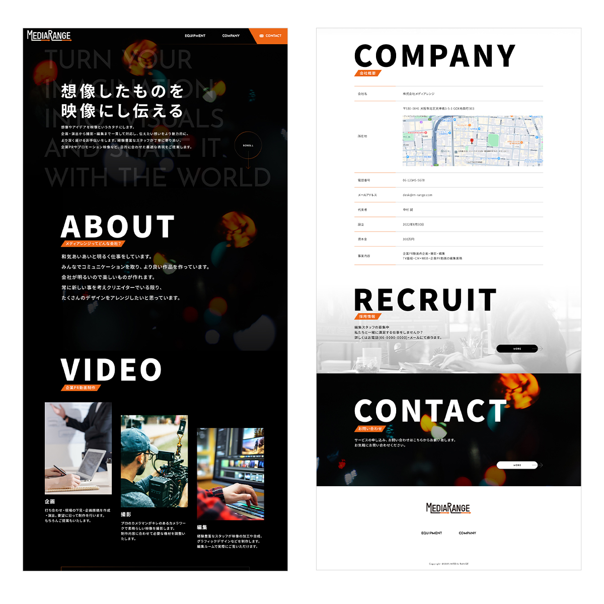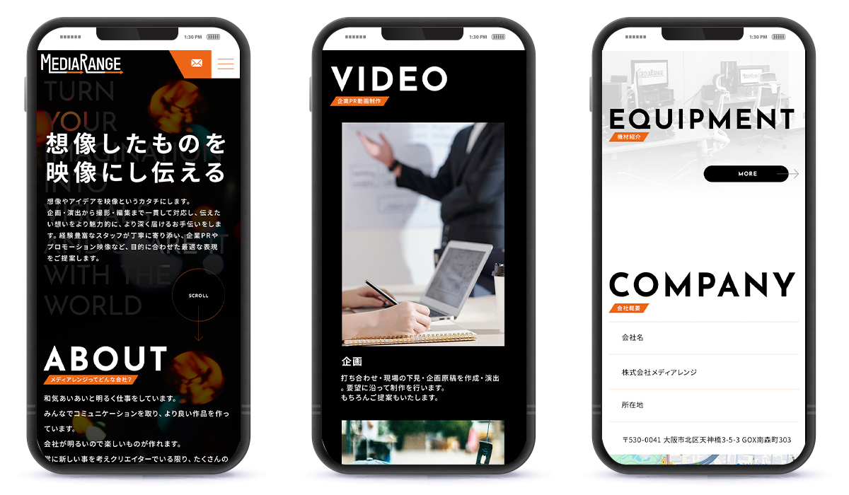 企業PR動画の企画・撮影・編集をはじめ、TV番組・CM・WEB動画・企業PR動画の編集業務を手がける、大阪に拠点を構える株式会社メディアレンジ様のコーポレイトサイトを新規制作しました。映像制作会社としての実績や表現力が直感的に伝わるよう、構成や導線を整理し、作品の魅力が際立つデザインを採用しています。また、企画段階から編集まで一貫して対応できる強みや、柔軟な制作体制が伝わるコンテンツ設計を重視しました。初めて依頼される企業にも安心感を与え、今後の案件獲得やブランド価値向上につながるコーポレイトサイトとして仕上げています。