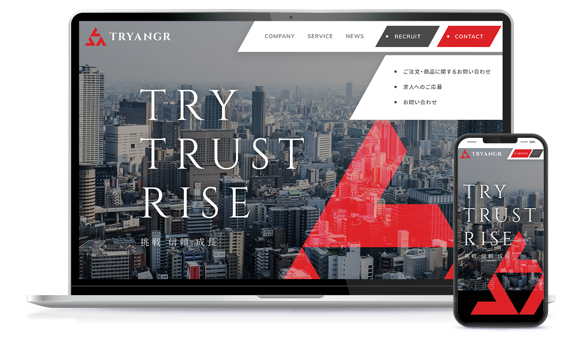 また、BtoB・BtoC双方のクライアントが自社に合ったソリューションを直感的に理解できるよう、サービス構成や導線を整理。信頼感と先進性を兼ね備えたコーポレイトサイトとして、TRYANGR株式会社の事業姿勢と可能性を伝える設計に仕上げています。